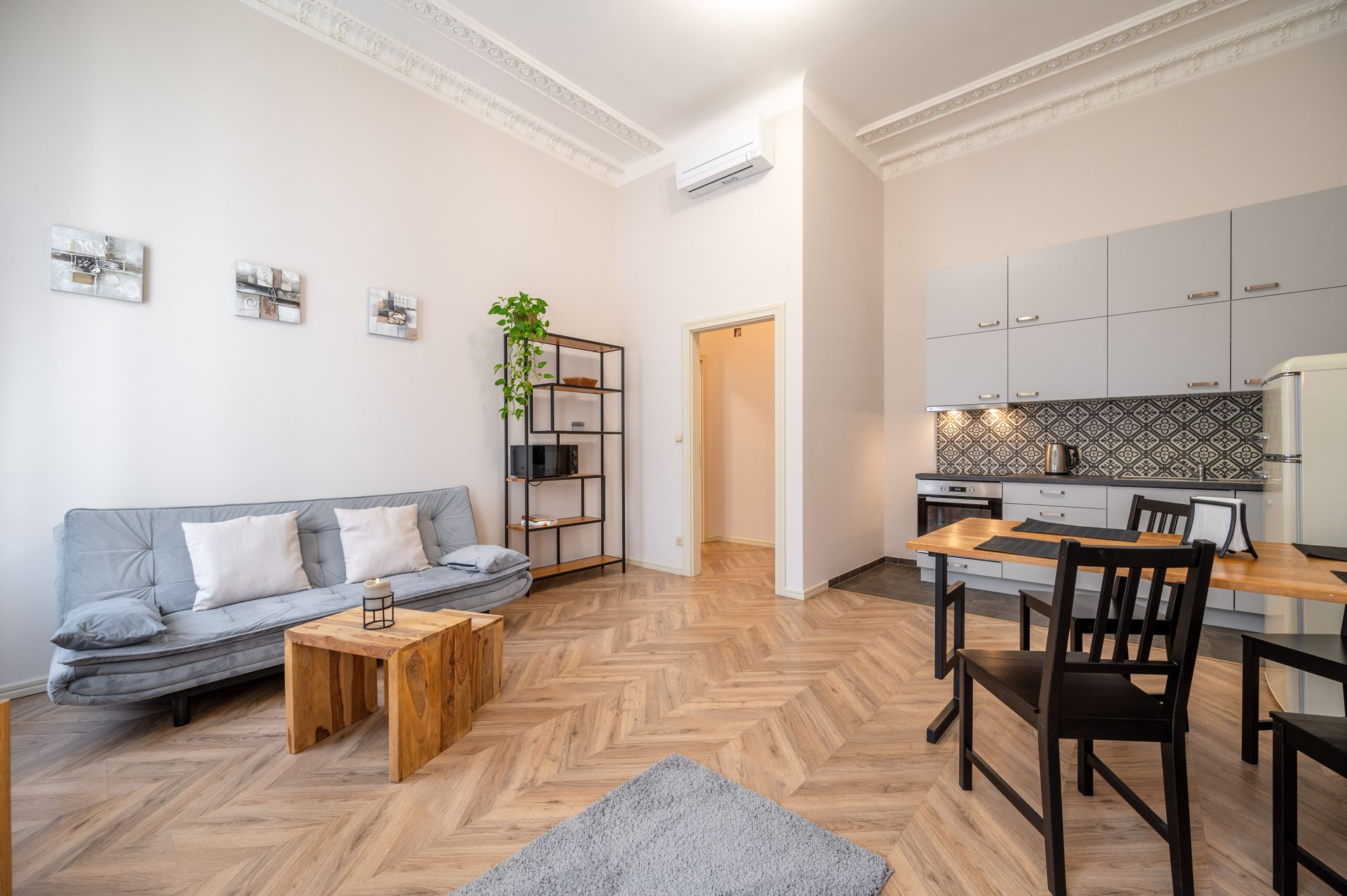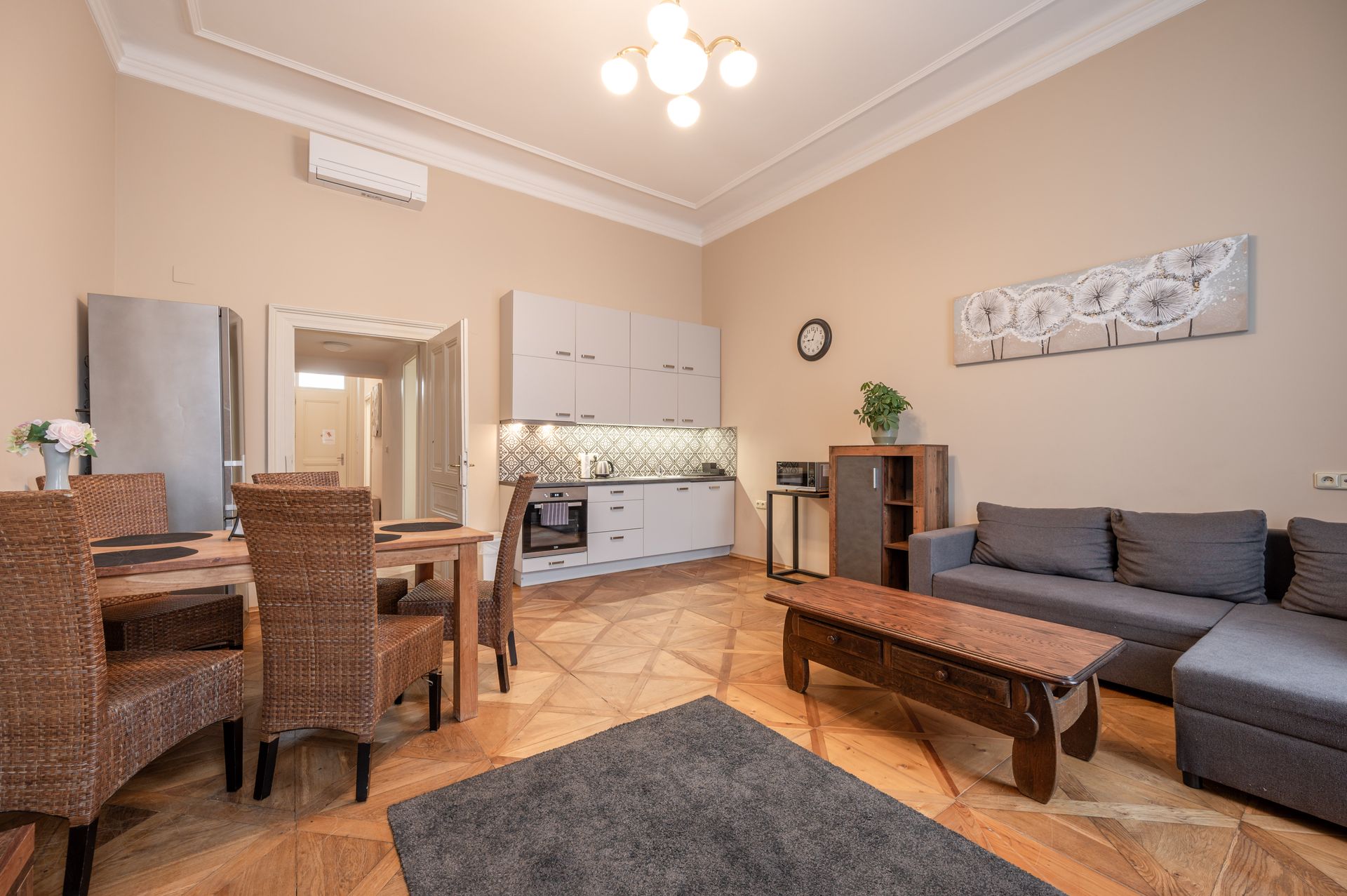 Toto komfortní apartmá je ideální volbou pro rodiny nebo skupiny přátel, kteří hledají pohodlné a prostorné ubytování. Díky promyšlenému uspořádání a modernímu vybavení nabízí tento pokoj ideální podmínky pro pohodlný pobyt.