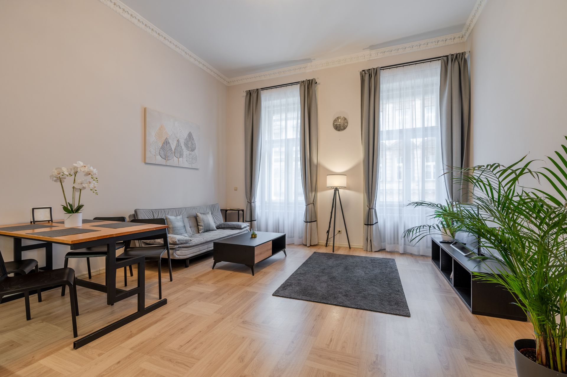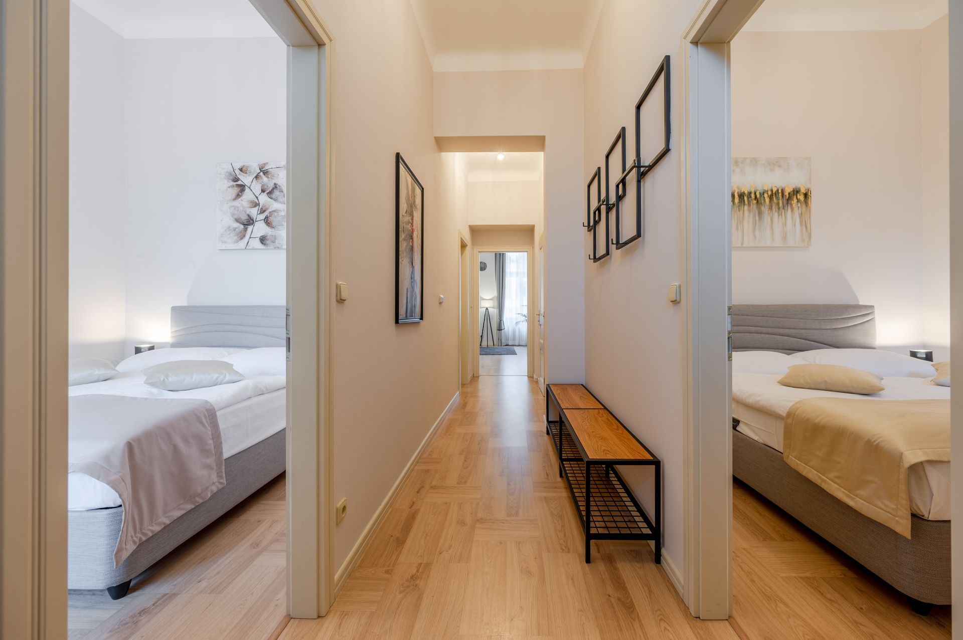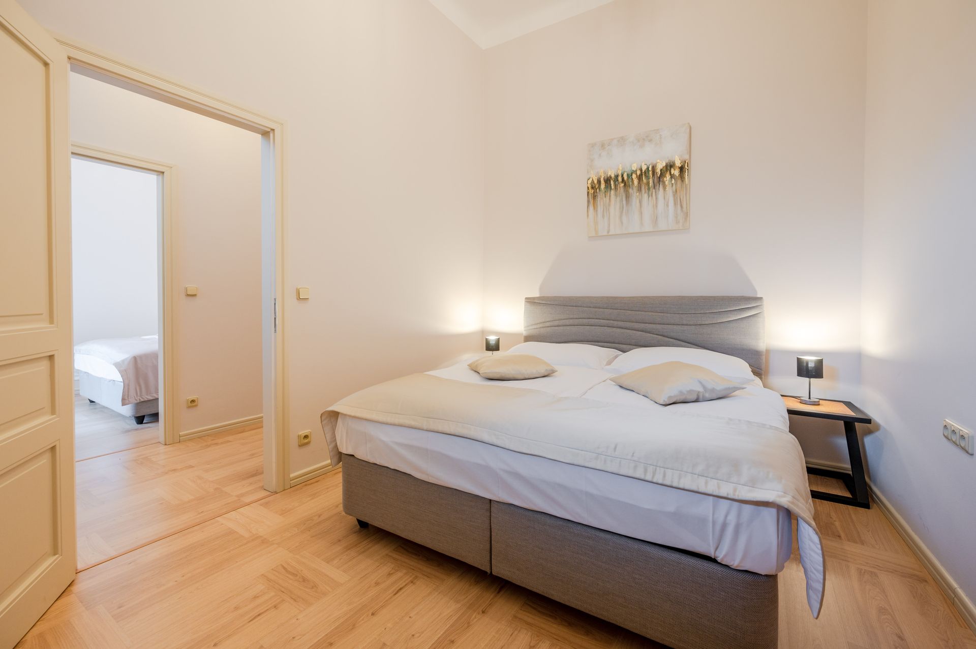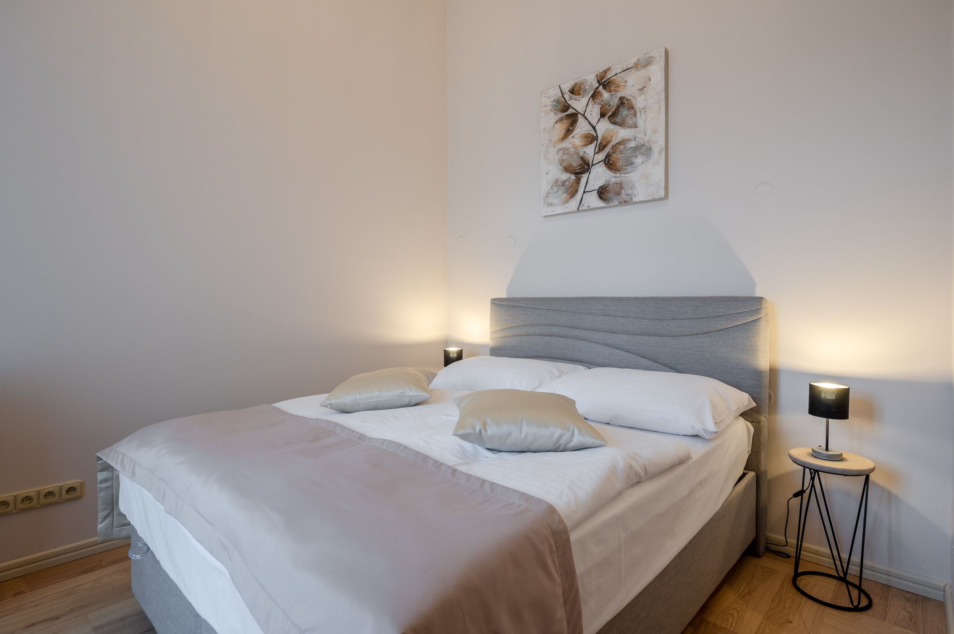 Tato prostorný apartmán nabízí obývací pokoj, 2 ložnice, koupelnu se sprchou, plně vybavenou kuchyň, klimatizaci, pračku, vlastní vchod a TV. K dispozici jsou 2 pohodlné postele.