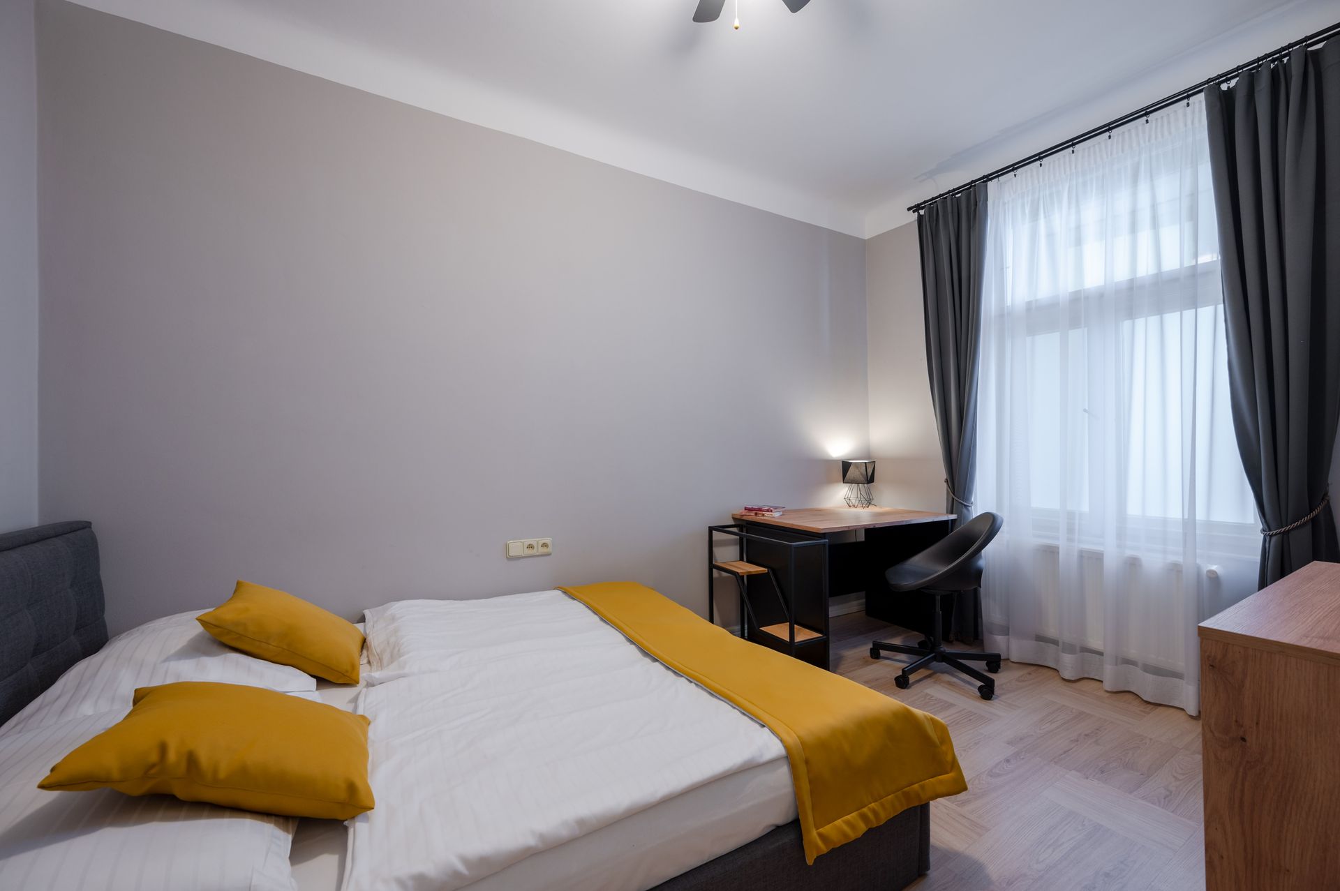 Výhled: Okna do ulice, 2 ložnice do vnitrobloku (bez klimatizace)